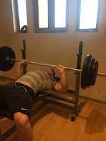 Last week I made the mistake of going from one press to the next and was suffering the next day because of it. So today was good: press, flies, press. Military is something I haven't worked out on yet and I find it to be a great exercise to develop the middle of the chest. Sometimes I use just a weight plate and hold it as if I'm trying to clap my hands - maybe we'll look to do this next time.
